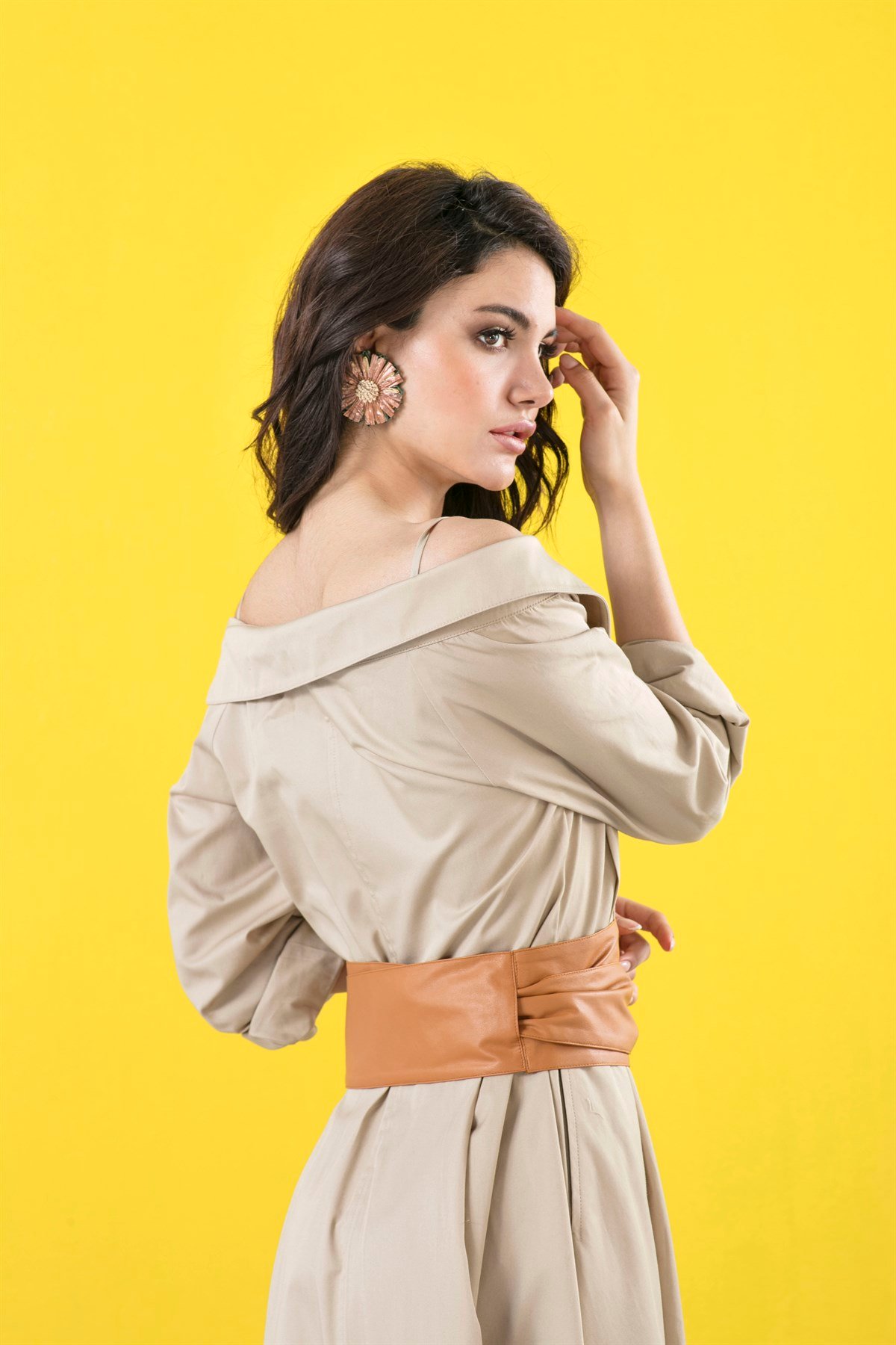 Model's height 179 cm, size 36. Bust 90 cm, waist 64 cm, hips 92 cm.