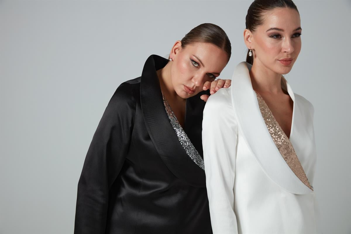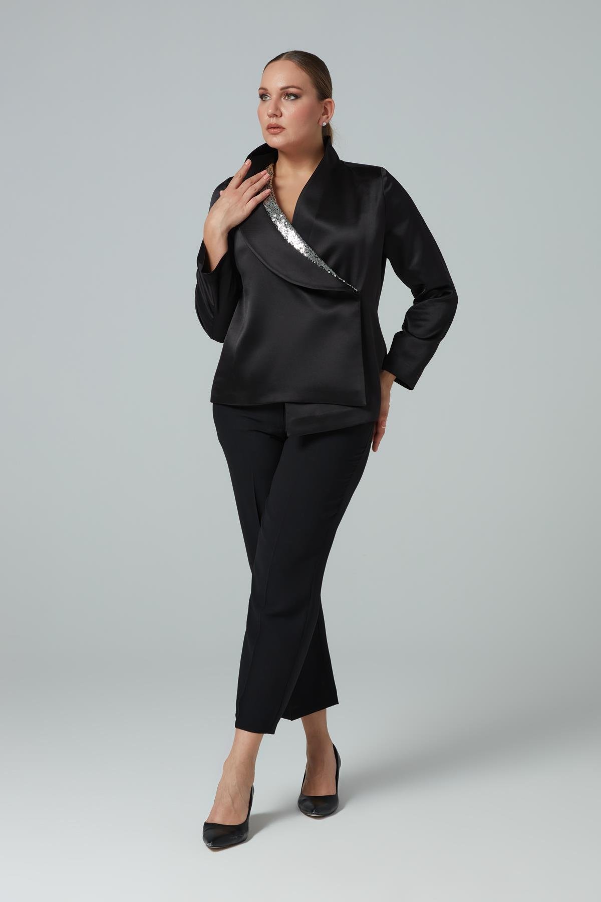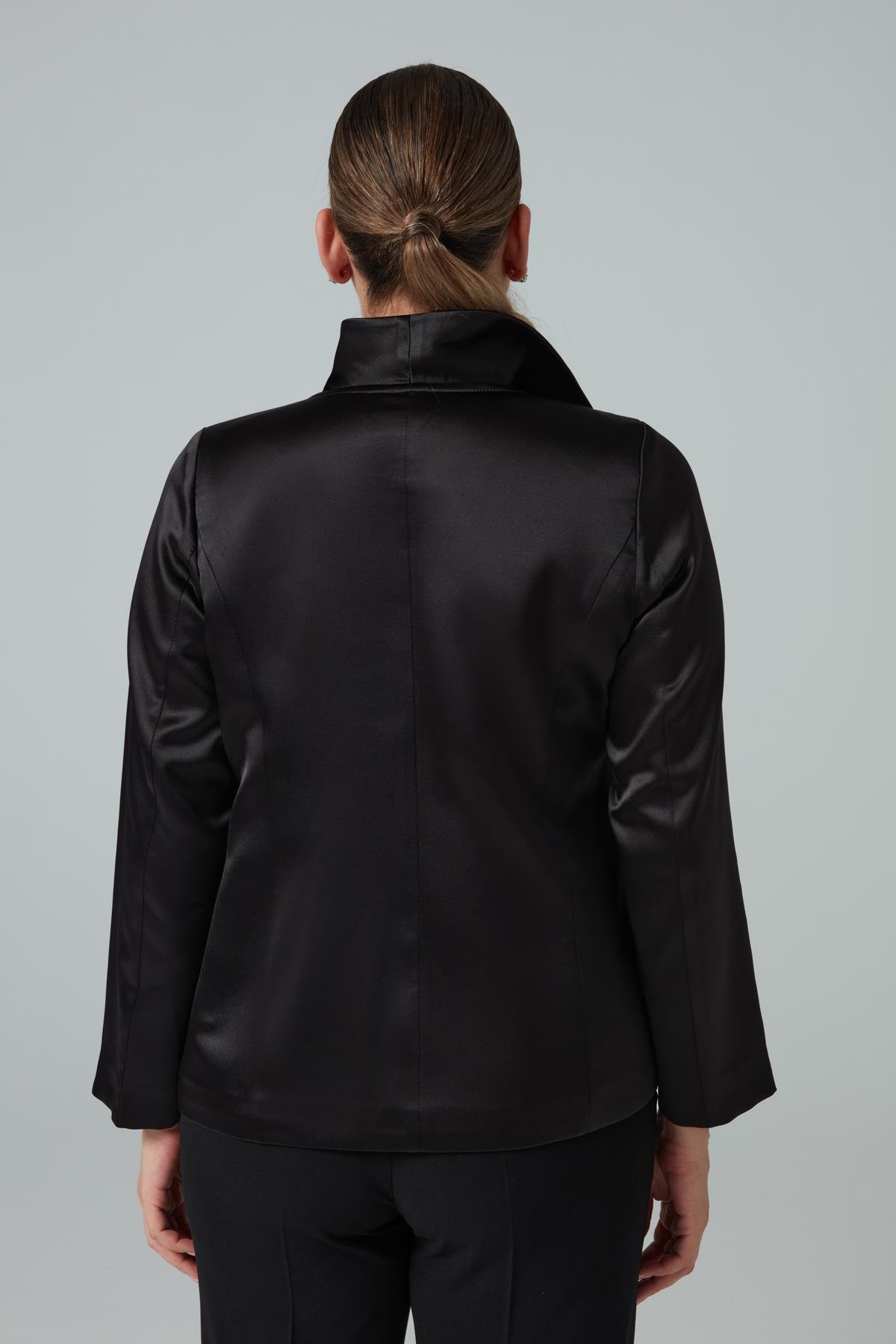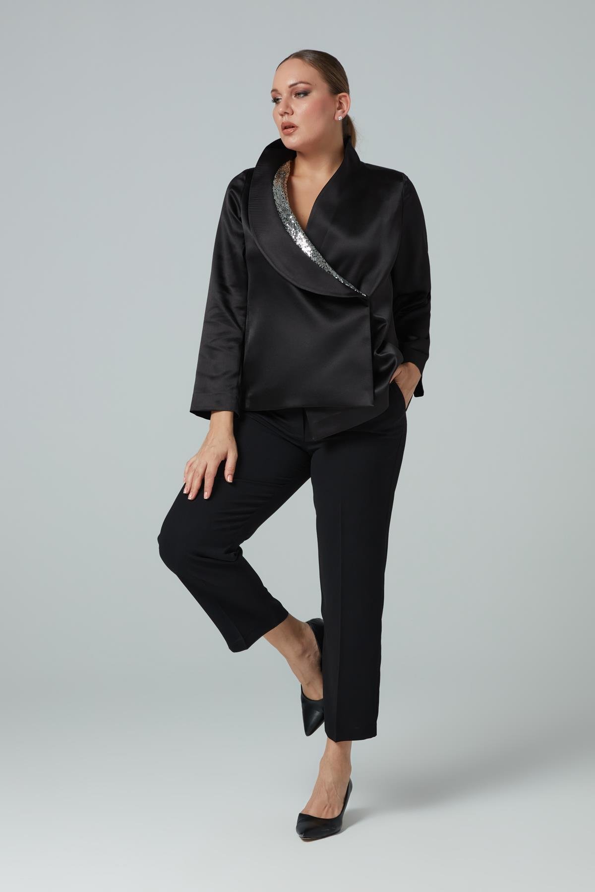 Payetli asimetrik kesim tasarım yaka detaylı, saten ceket